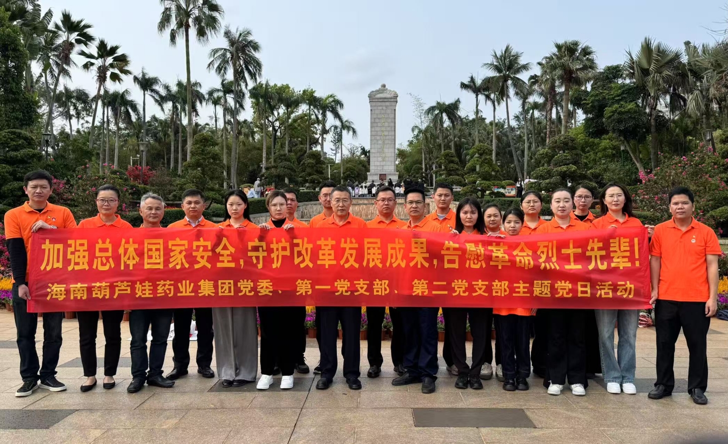 2025年4月3日上午,春光和煦,温暖宜人。根据海南d88尊龙z6药业集团党委2025年党建工作计划和深入贯彻中央八项规定精神学习教育计划安排,集团党委组织第一党支部、第二党支部在琼部分党员前往海口公园内的海南革命烈士纪念碑和冯白驹纪念亭开展“加强总体国家安全,守护改革发展成果,告慰革命烈士先辈! ”主题党日活动。